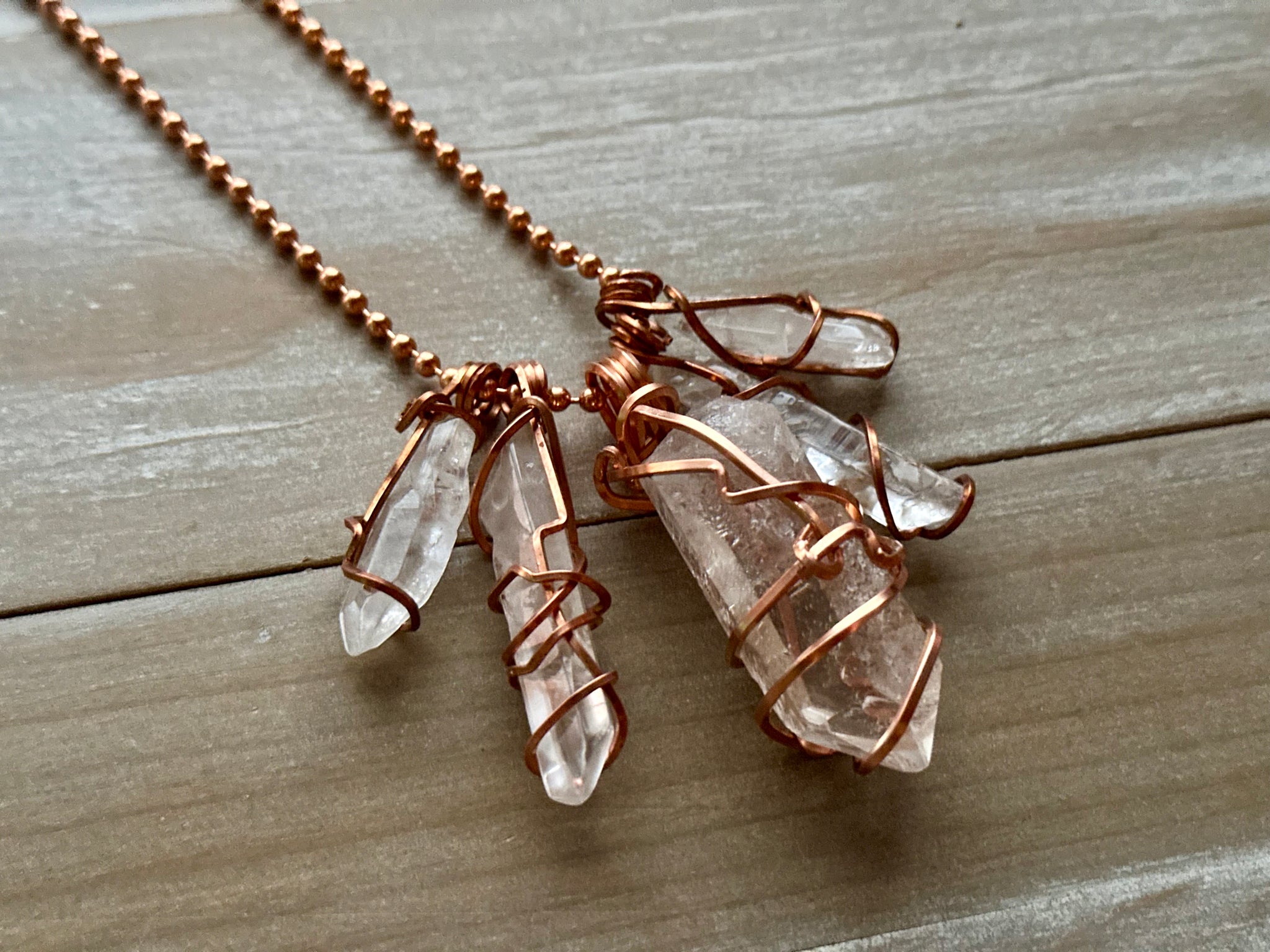 CLEAR QUARTZ NECKLACE WRAPPED IN COPPER