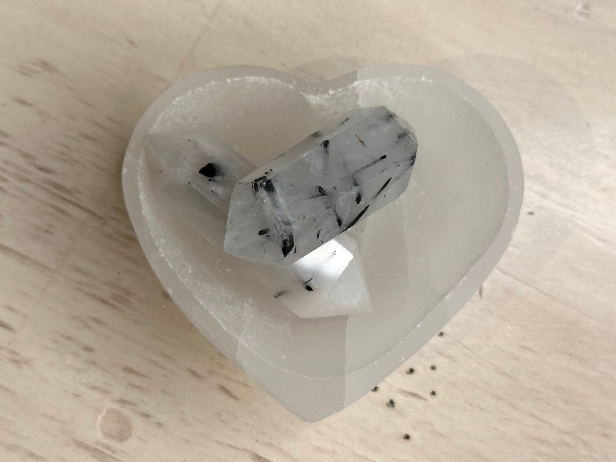 Tourmalated Quartz helps one identify emotional patterns that need to be purified and cleansed for one to experience more expanded spiritual states. It assists in clearing these patterns so that emotional clarity can be experienced.