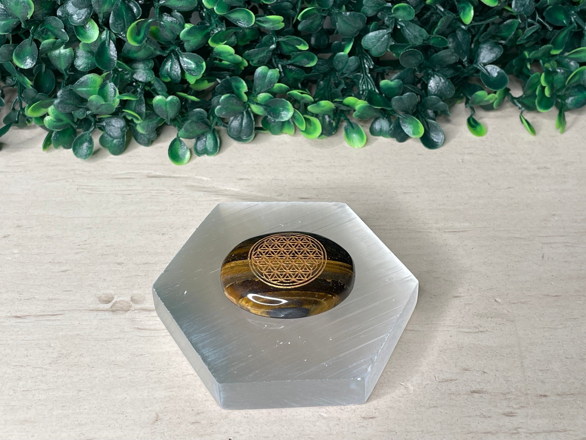 TIGER'S EYE | 'FLOWER OF LIFE' WORRY STONE